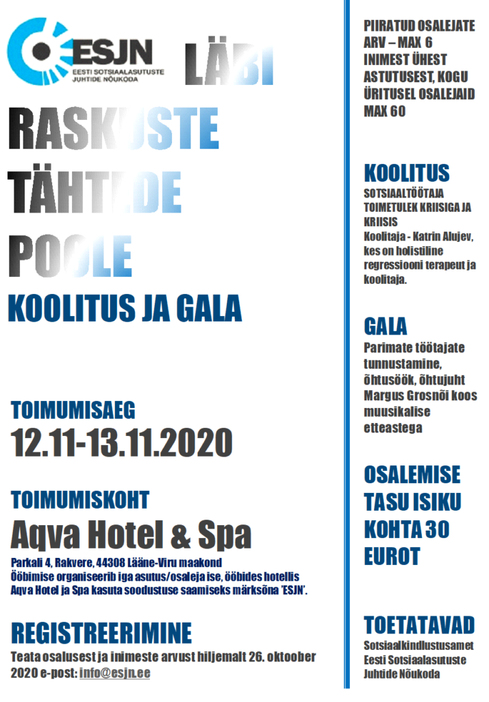 ESJN KORRALDAB koolitus, gala – LÄBI RASKUSTE TÄHTEDE POOLE – AQVA Hotell & SPA, Rakvere